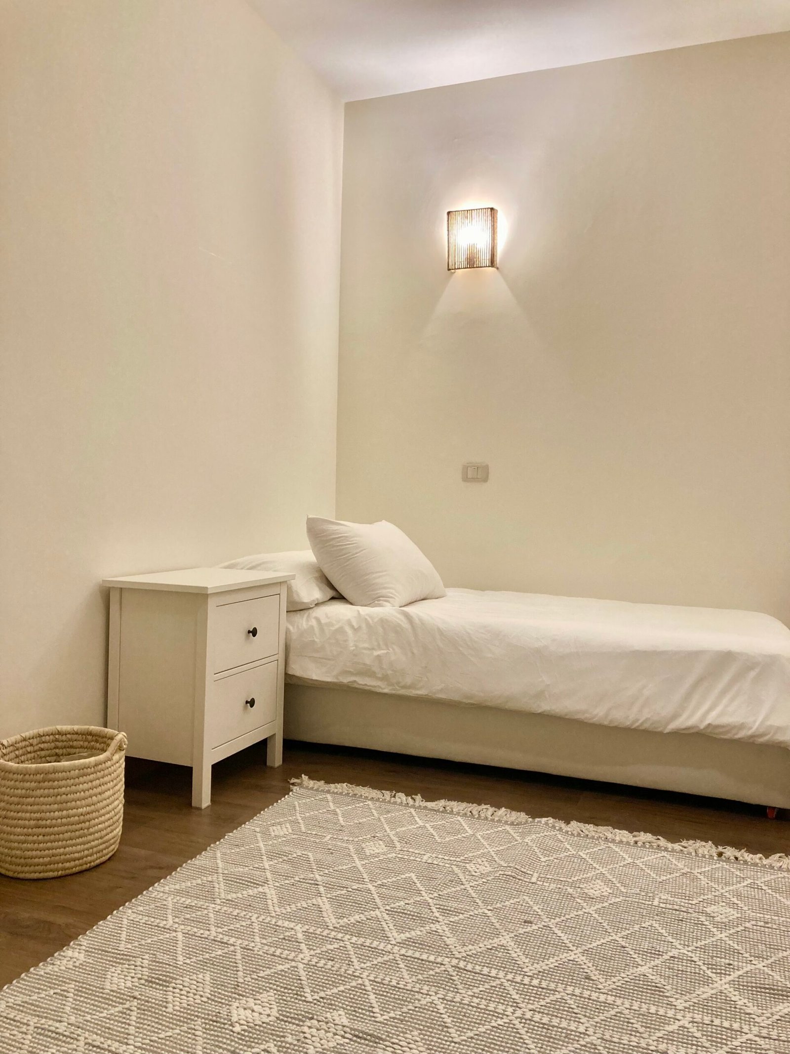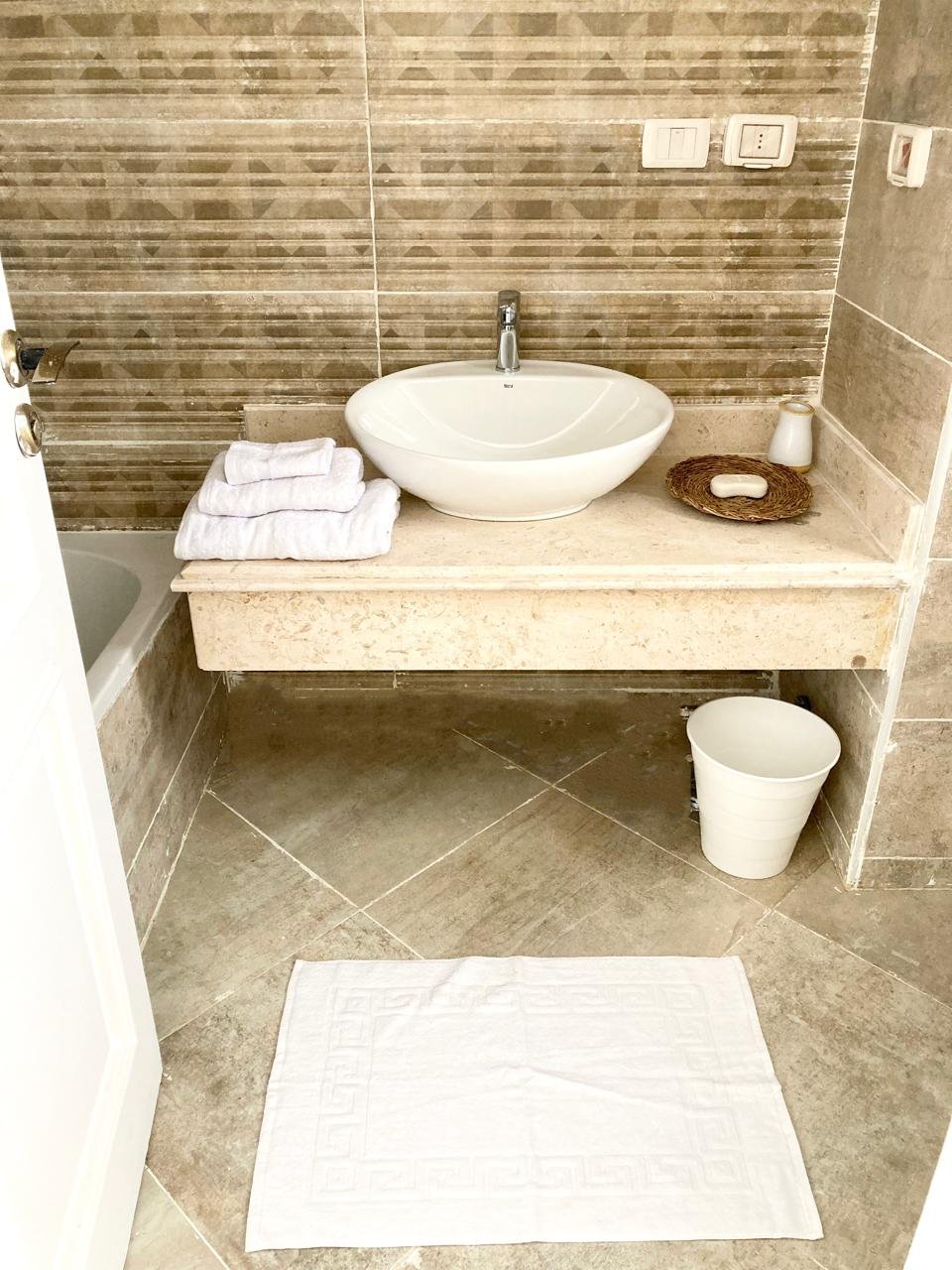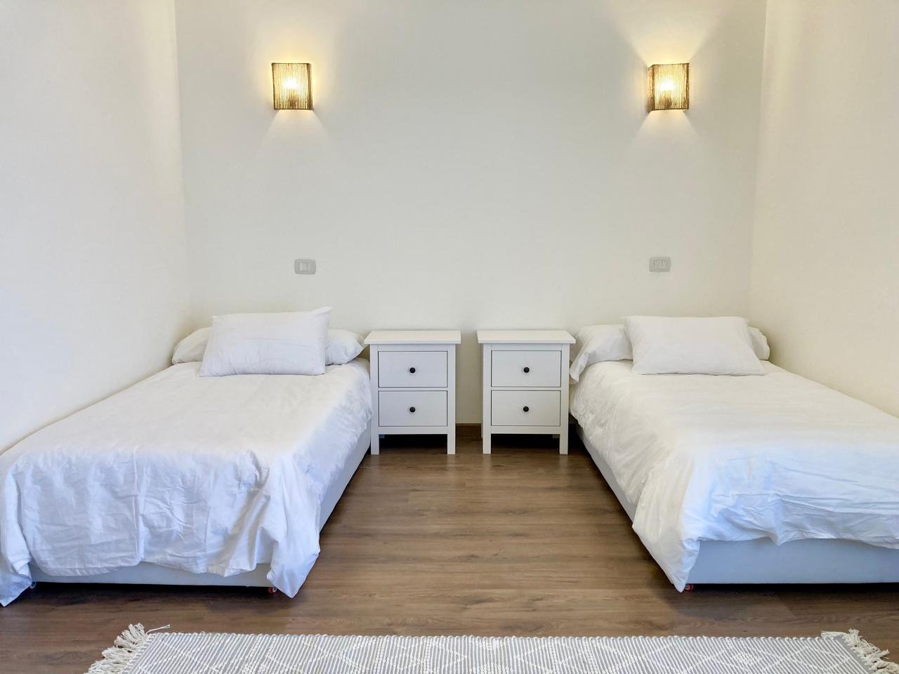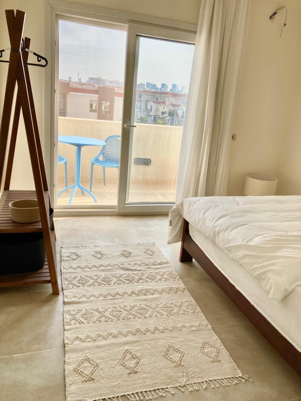 ٤ غرف نوم واسعة، بما في ذلك جناح رئيسي مزود بحمام خاص وشرفة. تم تركيب أجهزة تكييف وستائر — متاح إيجار أو شراء المفروشات والتكيف